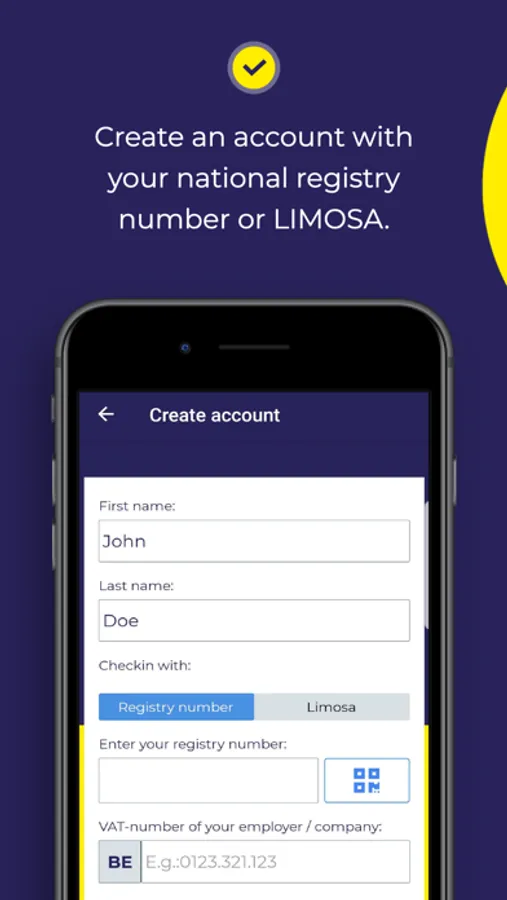 You easily check yourself in by creating an account in the app on your smartphone using your national register number or LIMOSA number (for foreign employees). You can also check in colleagues. Once you arrive at the site you can look it up in the list of locations. There you can easily and quickly register your check-in and you are legally all set.