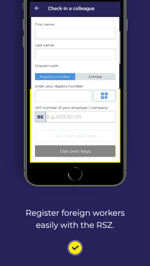 Not only employees, but also third parties such as subcontractors, can check-in so that they are registered for that day with the RSZ in Belgium.