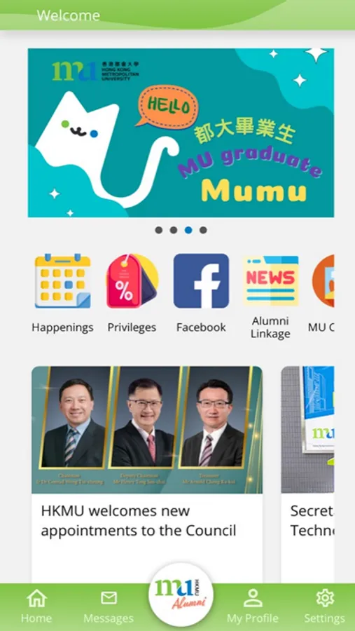 • HKMU Alumni Association – Register as member through the app to enjoy exclusive member privileges;