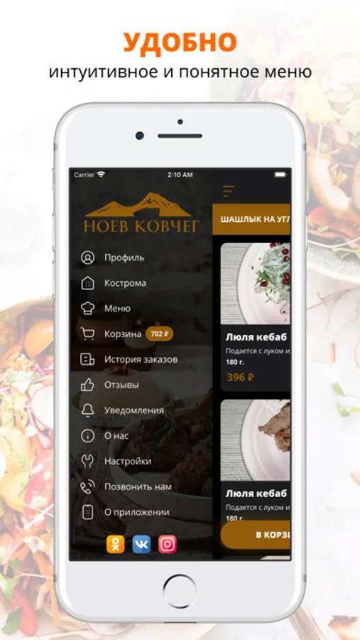 Приложение Ноев Ковчег — это удобный способ заказа еды домой или в офис! Мы готовим наши блюда из качественных свежих ингредиентов и доставляем еду по Костроме быстро и бережно.
