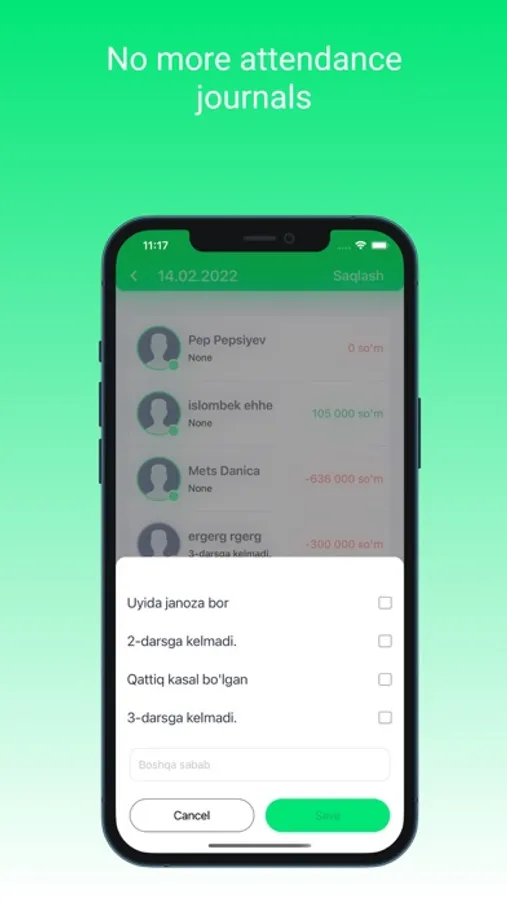 • O’quvchilar darsga qatnashganligi yoki qatnashmaganligi hamda uning sabablarini aniqlashda yordamlashadi