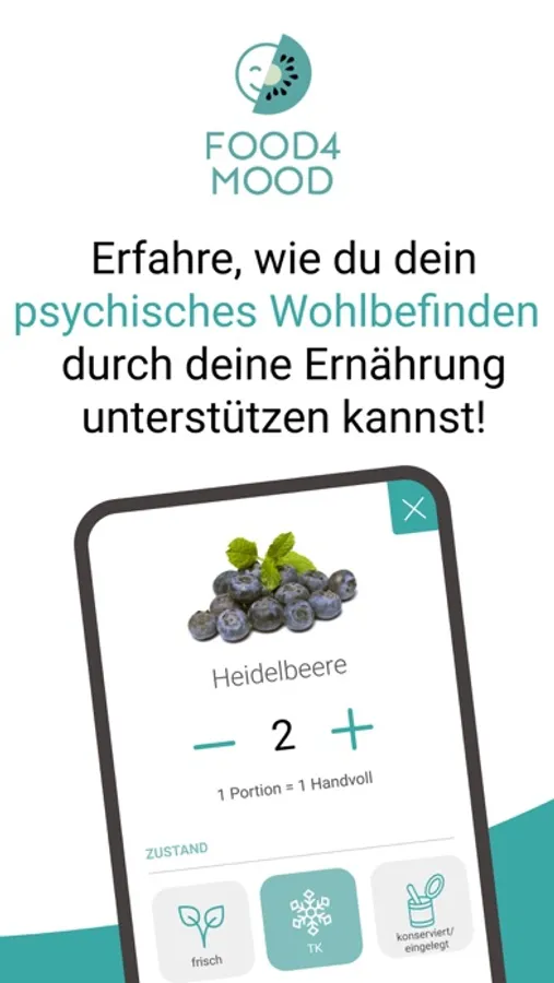 Food4Mood unterstützt dich dabei, die Anzahl an Obst und Gemüse zu dir zu nehmen, die deine Energie und Stimmung optimal fördern kann.