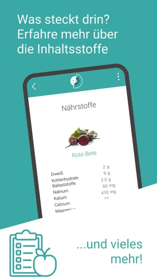 - eine Nährwert-Tabelle gibt dir Auskunft zu über 90 verschiedenen Obst- und Gemüsesorten