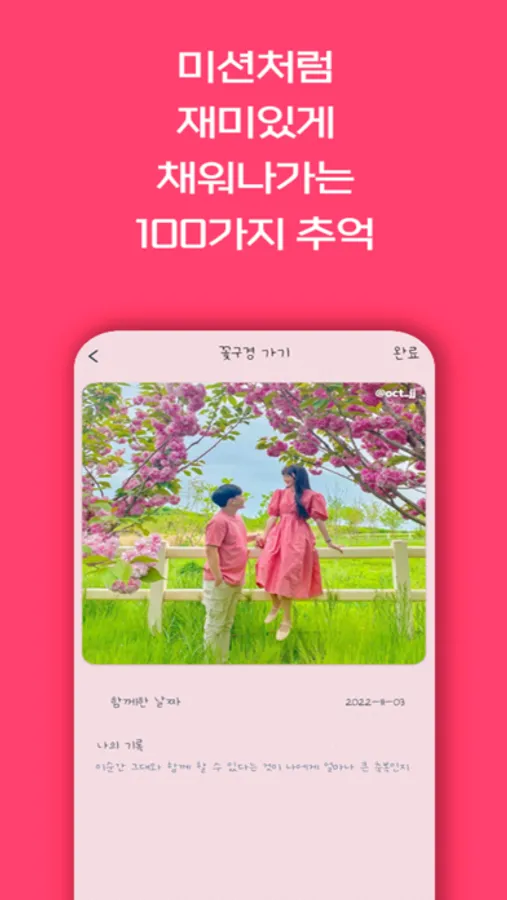 당신의 사랑하는 사람과 함께 해야 할 커플 버킷리스트 "100가지" 앱에서