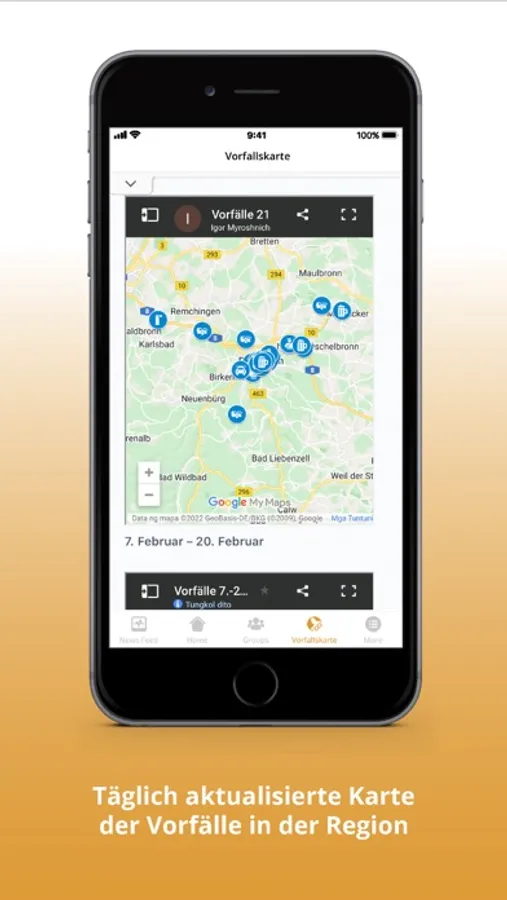 In der GoldstadtAktuell-App erfährst Du die Vorfälle, Unfälle, Brände und andere Ereignisse in einem Ort. Im gemeinsamen Chat kannst Du Dich in Echtzeit mit anderen Appnutzern austauschen. Durch die integrierte Meldefunktion übermittelst Du bequem die Info über einen Vorfall und machst damit GoldstadtAktuell noch besser!