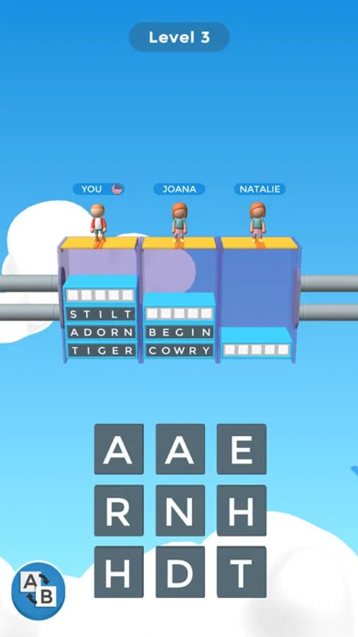 Can't make a word? Hit reshuffle to draw new letters, but be careful as you lose one of the words you have already made.