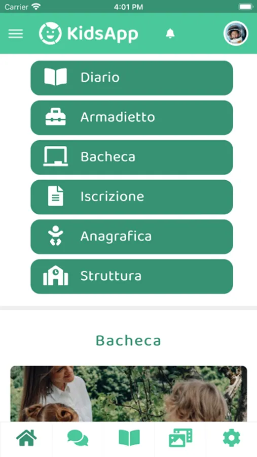 KidsApp permette alle famiglie di avere una finestra virtuale sulla struttura per l'infanzia dove è iscritto il proprio bambino.