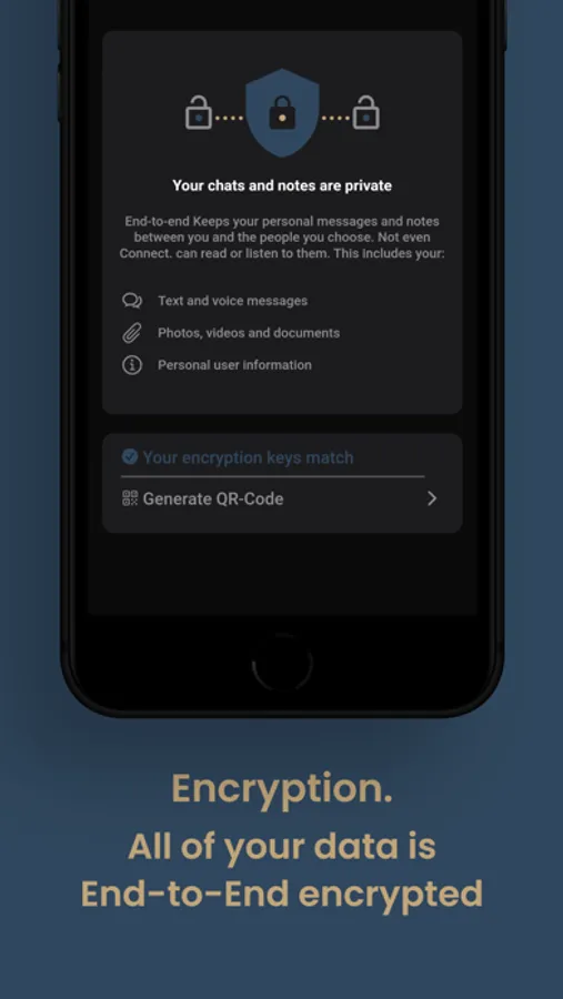 The Messages sent with connect are encrypted using the extremely secure RSA-encryption and deleted by our servers after it has been received so that the privacy of our users is not restricted.