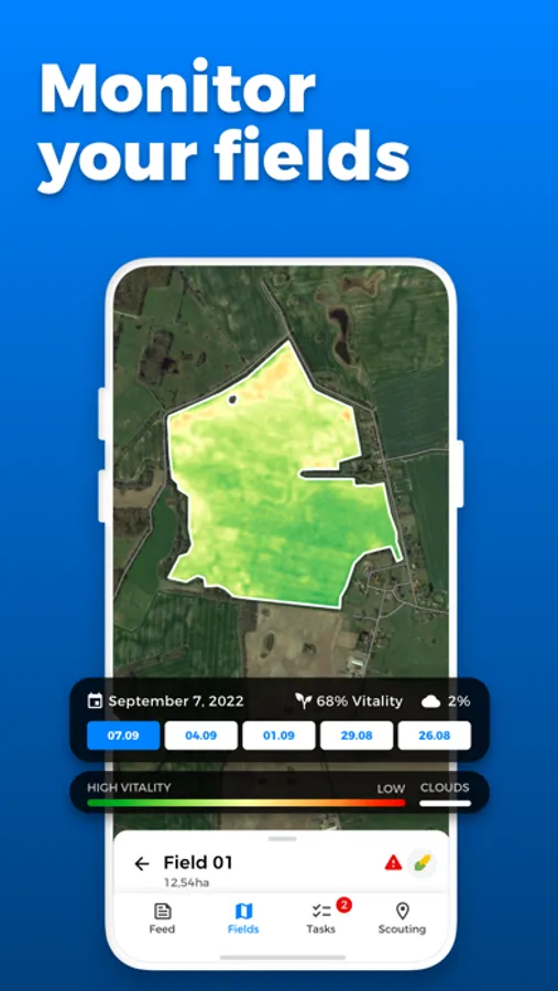 The farm maps are updated based on satellite images every couple of days, allowing monitoring fields without driving to each location. Make data-driven decisions for increased harvest.