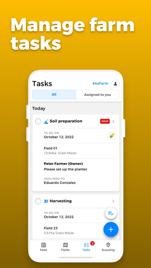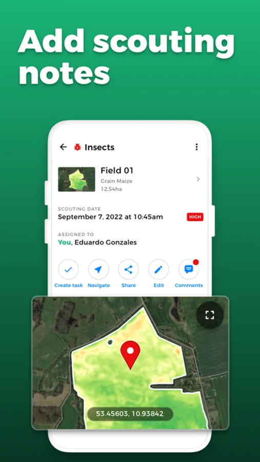 ● Optimize your farm management & teamwork to increase harvest - easily assign scouting notes and tasks to field workers.