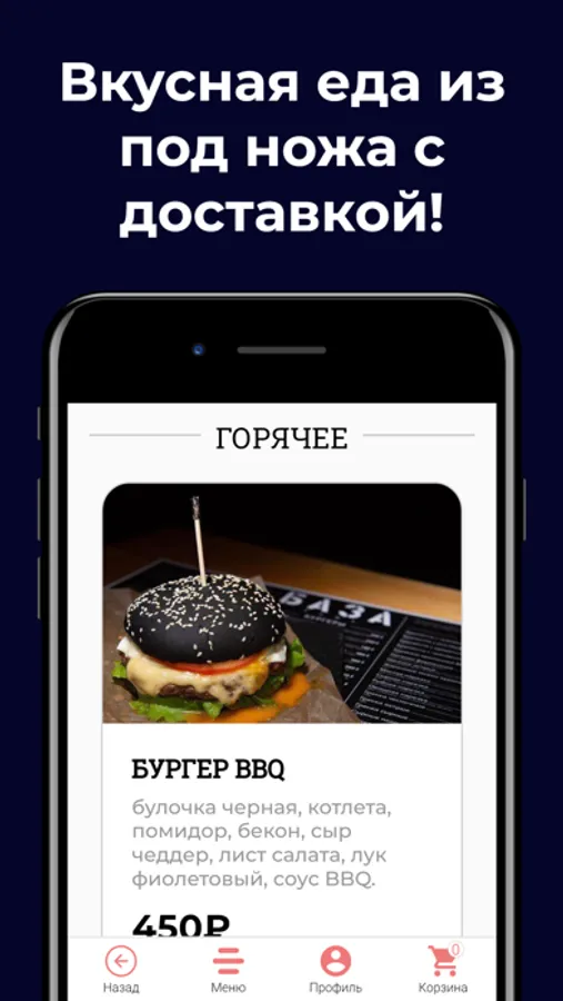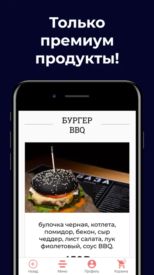 Сочные бургеры, горячие блюда из мяса и рыбы, салаты, закуски, напитки! Попробуйте наши сочные, аппетитные бургеры с рубленной котлетой из премиальной говяжьей вырезки, это очень вкусно!