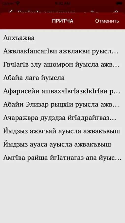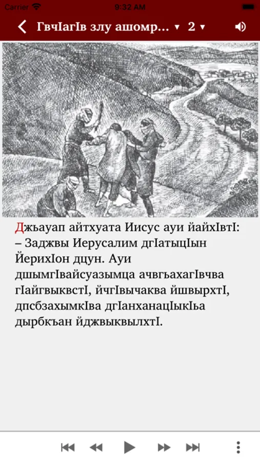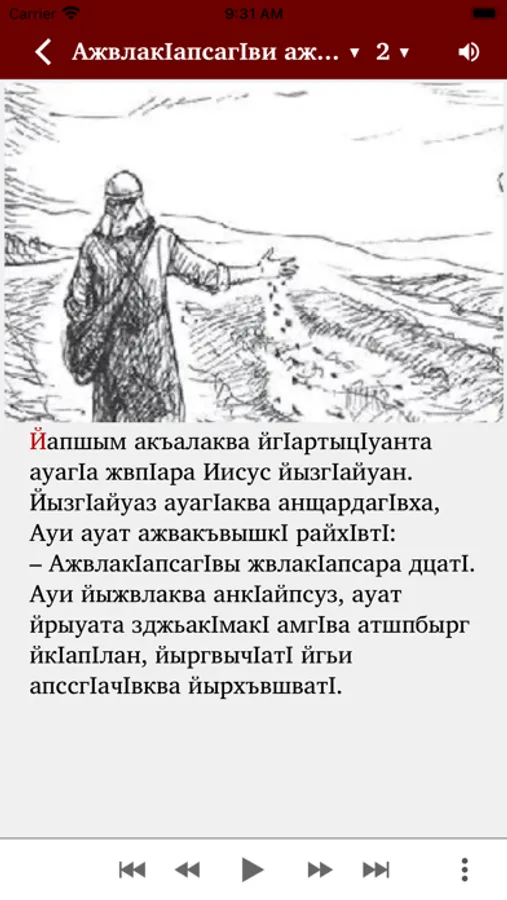 This app contains the Abaza translation of nine selected parables from Luke’s Gospel, produced by the Institute for Bible Translation. The text is accompanied by animated pictures.