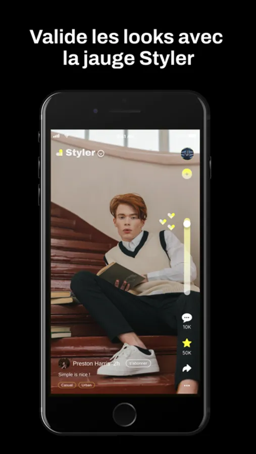 Whether you are in a fitting room or in the middle of your dressing room preparing your date, Styler will help you and advise you in less than a minute on the look to adopt according to the styles you like and your mood of the day. Share your looks, get inspired by your community and friends, and help them become as stylish as you are!
