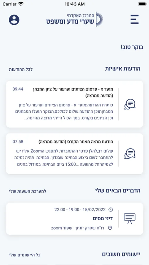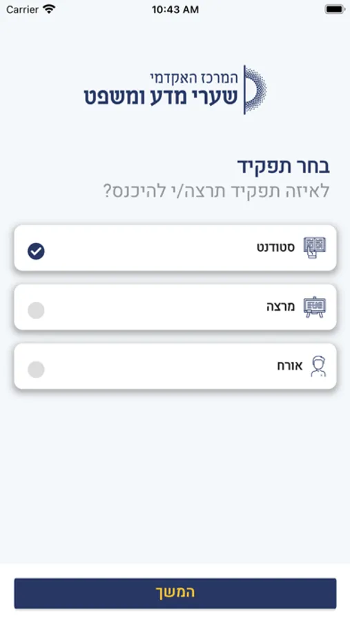 האפליקציה חינמית וזמינה לסטודנטים של שערי מדע ומשפט בלבד.