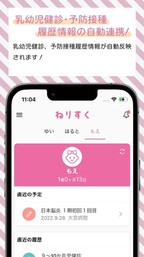 ◆乳幼児健診情報・予防接種履歴情報の自動反映◆