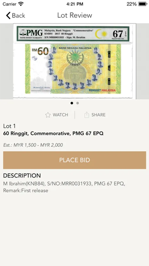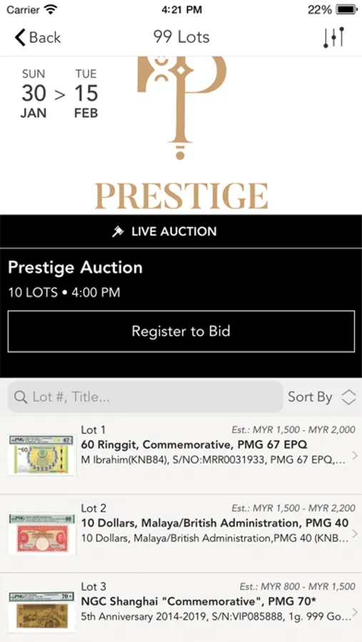 Prestige Auctions, located in Selangor & KL was established in 2021. Prestige auction house will conduct multiple sales a year with focus on Malaysia Bank notes currency and coins, in addition with various world banknotes & coins. Prestige Auctions also provide professional evaluation service, numismatic or auction events. With the Prestige Auction Live App, users can preview watch and keep track their bid in our auctions on their smart devices/mobile tablet.
