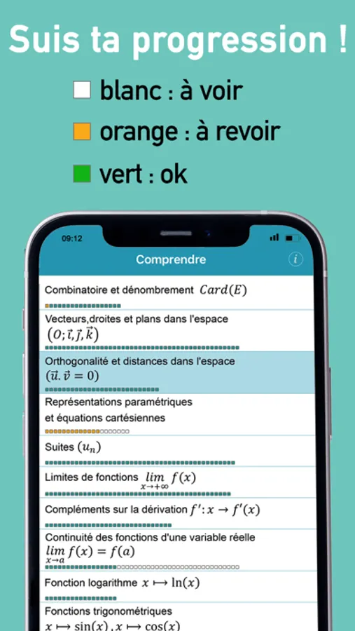Des diodes colorées permettent à l'élève de suivre sa progression (blanc : à voir, orange : à revoir, vert : ok).