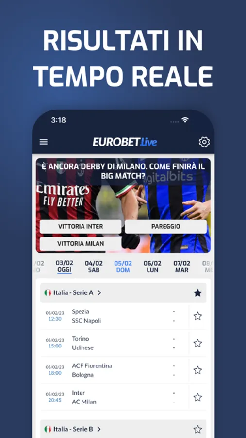DIRETTA: Qualunque campionato tu preferisca, con il livescore di Eurobet.live trovi sempre le partite in programma di ogni giorno.
