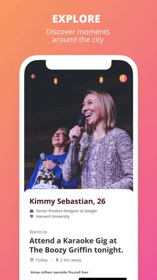 - You can find several activities or moments (as we call them) being posted on the app, all you have to do is browse to see what interests you the most and request to be a part of it.