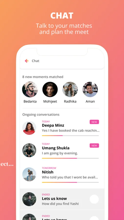 Chats and moments usually expire after the selected interval considering your privacy (So that your old matches don’t bother you in the future). So, have all your activities planned out accordingly.