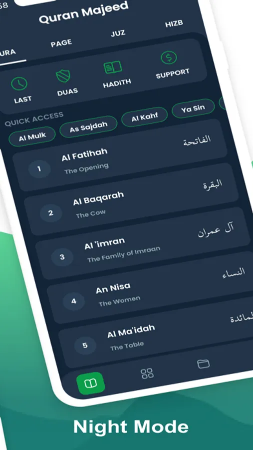 ▪ Multiple Quran translations, as well as Tafsirs, can also be seen at the same time.