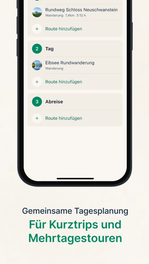 Schluss mit Gruppenchats und langer Suche im Netz: Lege einfach einen neuen Trip an, lade deine Freunde direkt oder per Link ein und startet gemeinsam die Planung eures Trips. Jeder kann Routen vorschlagen und zur Tagesplanung hinzufügen. Ihr könnt für einen oder mehrere Tage planen.