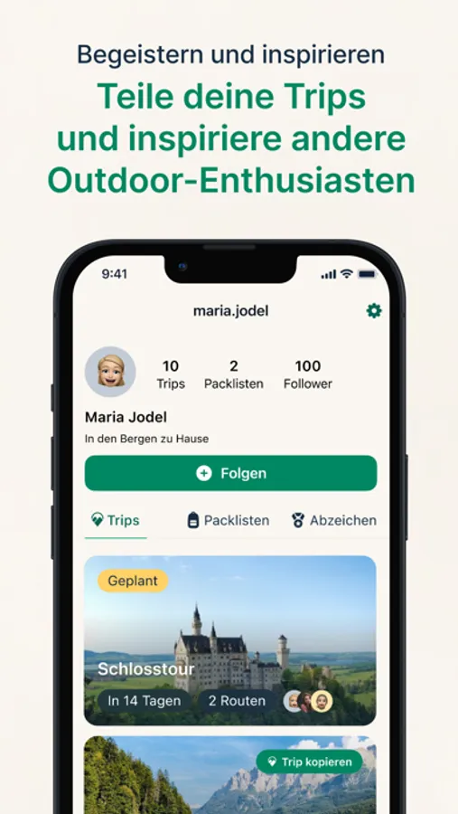 Teile deine Trips in deinem Profil und ermögliche damit anderen deinen Trip nachzureisen.