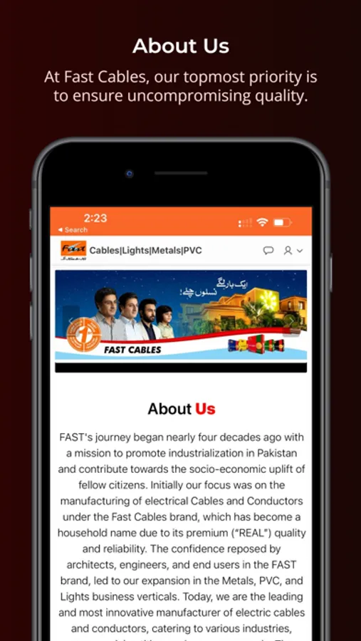FAST's journey began nearly four decades ago with a mission to promote industrialization in Pakistan and contribute towards the socio-economic uplift of fellow citizens. Initially our focus was on the manufacturing of electrical Cables and Conductors under the Fast Cables brand, which has become a household name due to its premium (“REAL”) quality and reliability. The confidence reposed by architects, engineers, and end users in the FAST brand, led to our expansion in the Metals, PVC, and Lights business verticals.