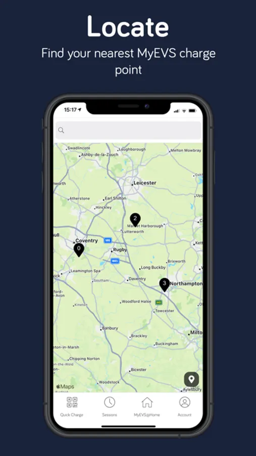 The MyEVS app allows EV drivers to locate and charge their vehicles on MyEVS charge points: