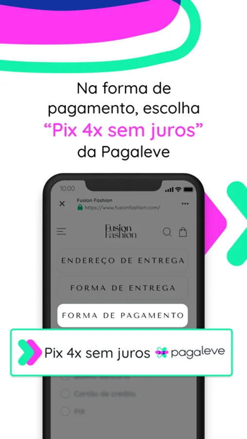 Com a Pagaleve, você parcela suas compras via PIX em 4x sem juros e sem a necessidade de cartão de crédito. Basta realizar sua compra no site de uma de nossas lojas parceiras e, na forma de pagamento, escolher "PIX 4x sem juros" com a Pagaleve. A aprovação do pagamento é feita em segundos!