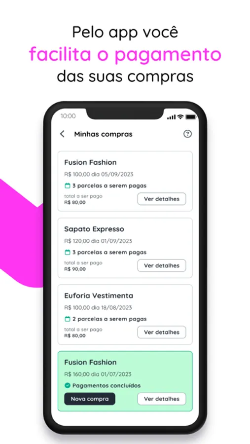 No nosso aplicativo, você facilita o pagamento das suas compras e pode, além de ter acesso ao seu histórico e fazer novas compras.