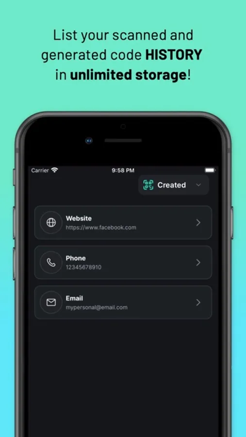 - SAVE and access your barcodes and QR codes any time. Unlimited storage!