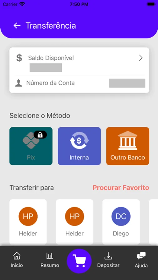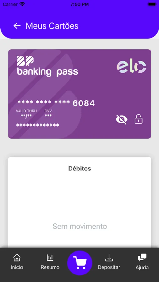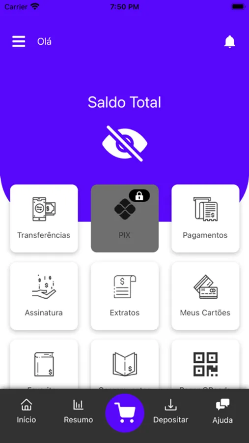 Banco digital completo: conta digital, investimentos, shopping, cartão de crédito, cartão de débito, cartão virtual, QR Code para pagamento, financiamento imobiliário, seguros e muito mais!