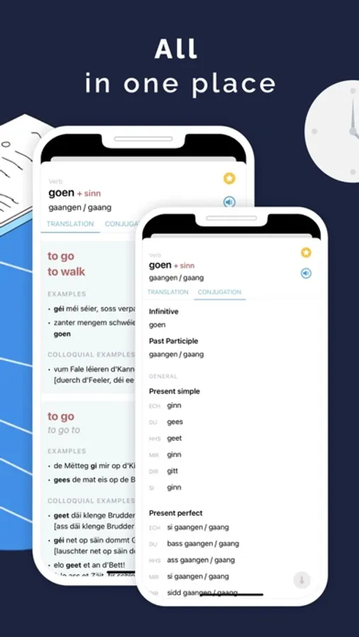 It is designed and optimised for mobile device. The app helps you to quickly gain access to multilingual translations and conjugations for Luxembourgish words.