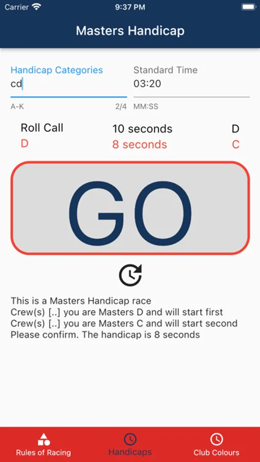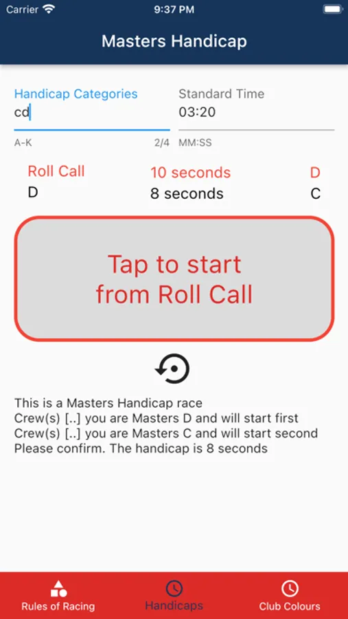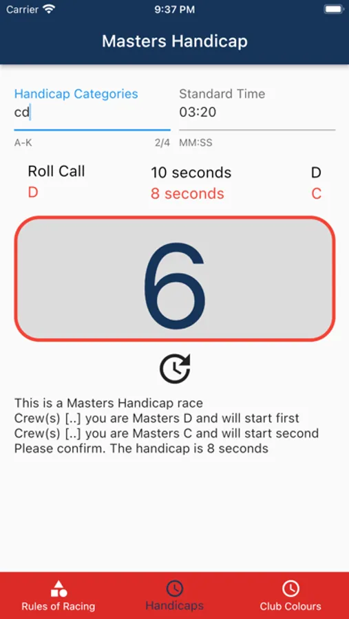 - Only have 2 crews and a pre-calculated handicap? select the calculated handicap and it will countdown from there