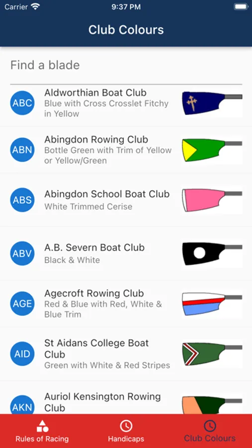 Not sure which club is represented by the visible blades? Search for the colours seen and likely clubs are shown.