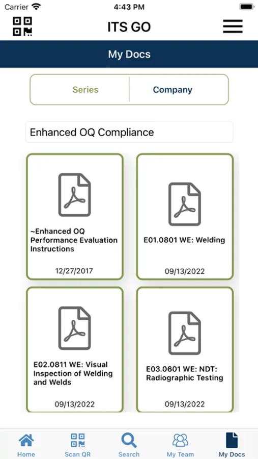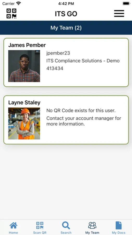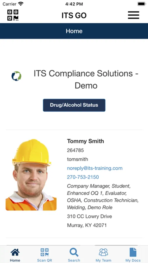 Permissioned users can scan an employee’s ITS QR Code to view their qualification and training records, search for employees within company and contractors, quickly view team’s record transcript, and easily access ITS' other mobile applications.