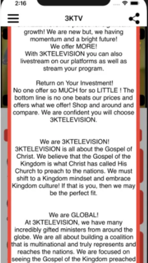 3KTELEVISION is all about the Gospel of Christ. We believe that the Gospel of the Kingdom is what Christ has called His Church to preach to the nations. We must shift to a Kingdom mindset and embrace Kingdom culture! If that is you, then we may be the perfect fit.