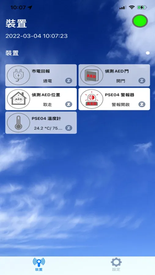 AED機箱門被開啟、AED機被使用、機箱電源偵測,任何狀態改變立即可以收到推撥。