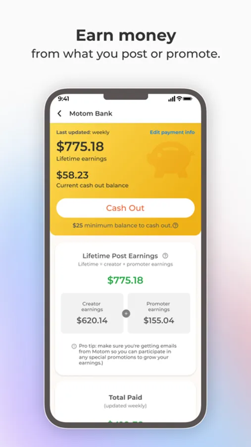 • EARN commission when someone buys from your tagged posts and through other incentives exclusive to the Motom community.