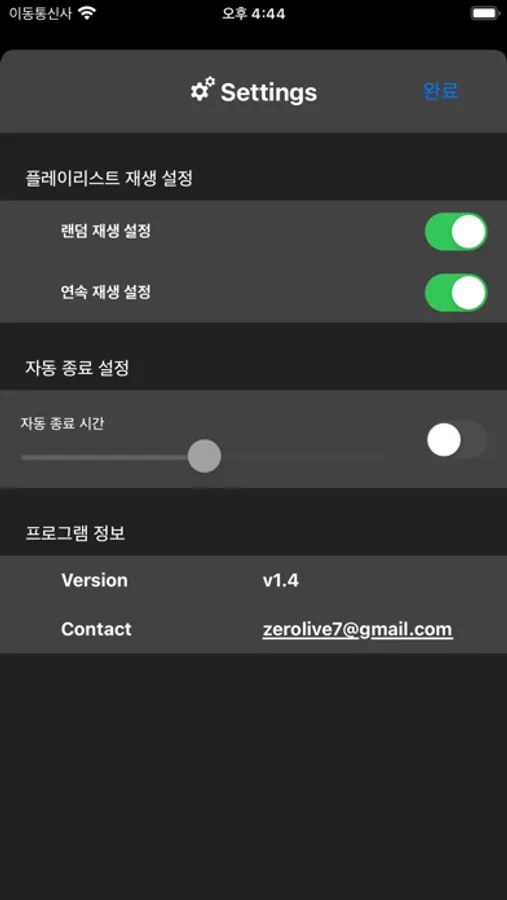 설정에서 종료 타이머를 통해 자기 전에도 감상해 보세요!