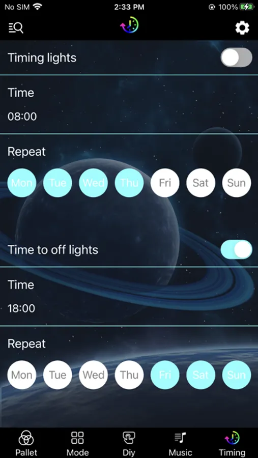 Through the APP, you can set the light to the color you want, bringing you into a colorful world. It can control devices individually or in groups. You can set different colors, brightness, and also edit the mode for you to choose. Of course, if you have a better idea, you can set it in the custom interface. The music mode can be based on the rhythm of music, and can also be picked up by APP or device to change colors. Timing mode enables the lights to turn on and off automatically at the time you set.