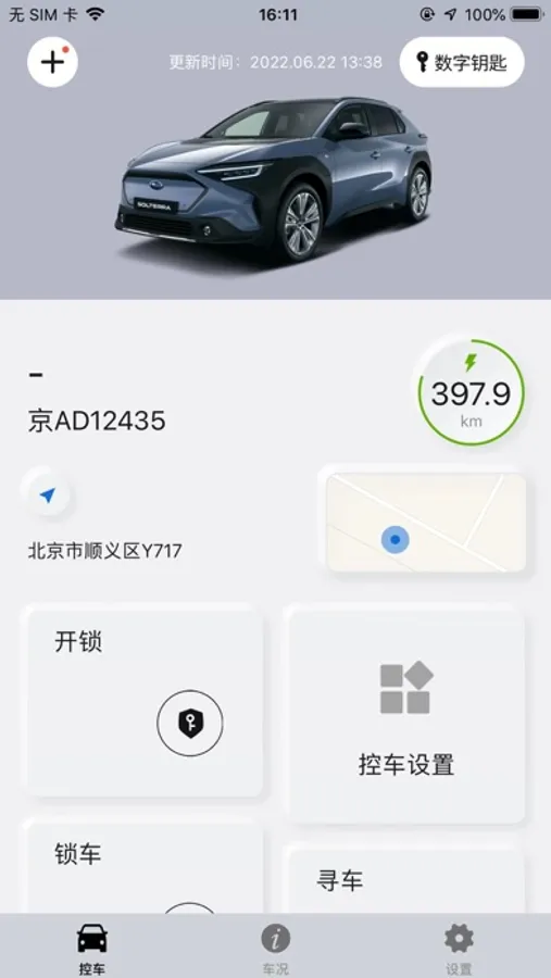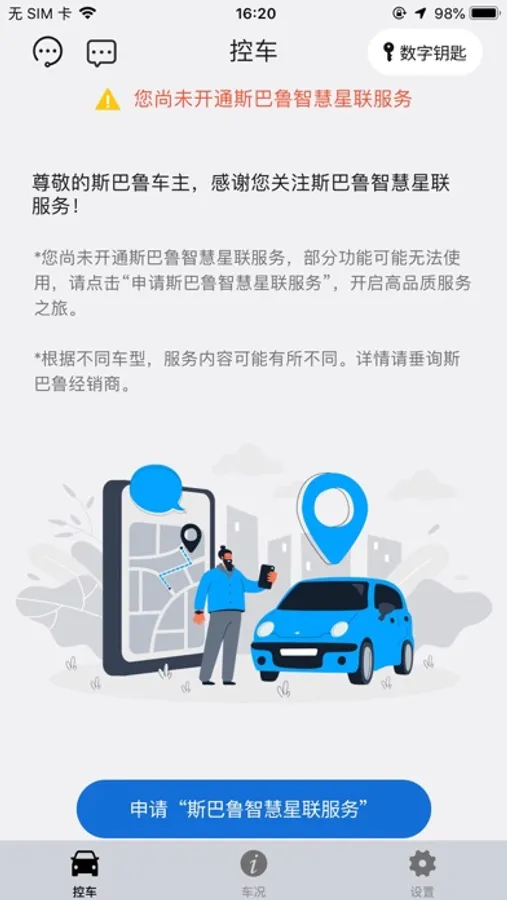 1. 数字钥匙:可以通过斯巴鲁智慧星联 SUBARU STARLINK APP进行车辆的开锁,关锁,以及爱车共享(本功能提供对象为搭载数字钥匙功能的车辆)