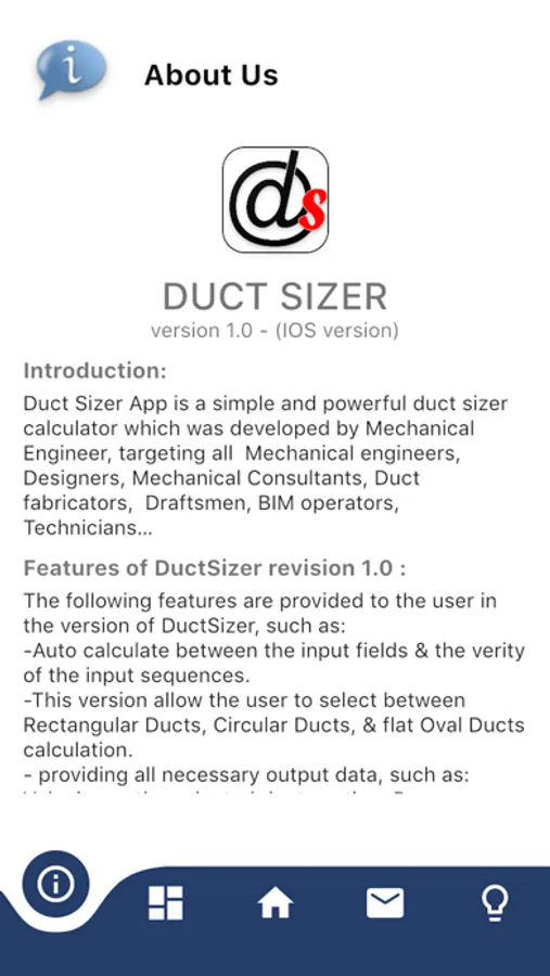 Duct Sizer by TALO-tech is a powerful tool to calculate duct (Rectangular, Circular, Oval) sizes.... With Easy interface & multi options of entry will make the user experiance easy to use... PDF report can be generated from the calculation & can be shared with others or even save it in your devise.