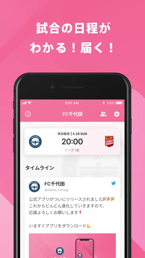 アプリを通じて、チームとの距離がぐっと近くなる。仲間が増える。チームをもっと好きになる!