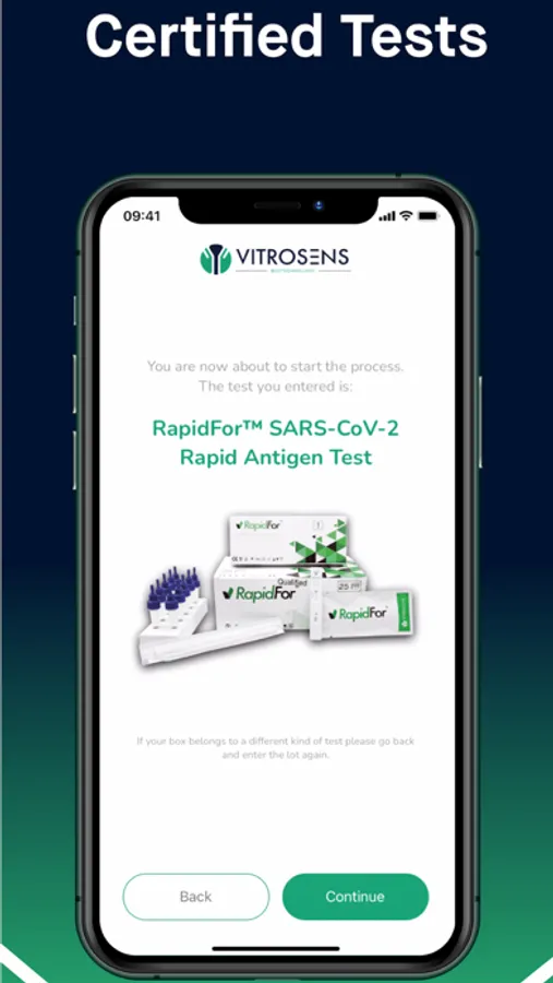 Every single package of Vitrosens test kit is affixed with distinctive QR code sticker that is printed for showing LOT number of the test to enable user to authenticate the product via “VitroApp” app.
