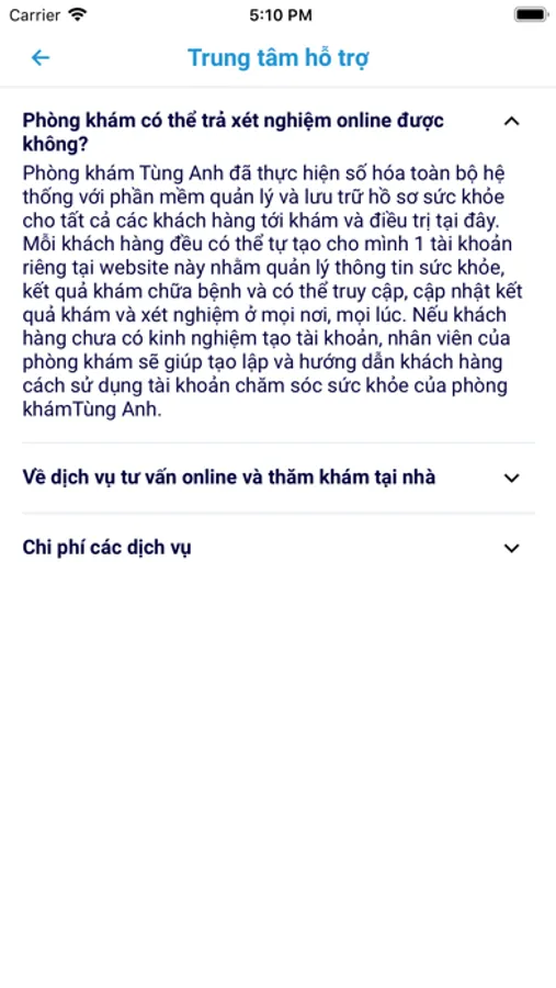 Ứng dụng dành cho bệnh nhân phòng khám Tùng Anh