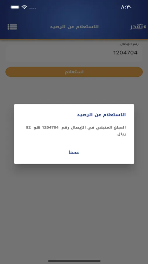 * يمكنك الاستعلام عن الرصيد المتبقي في الإيصال عبر إدخال رقم الطلب.