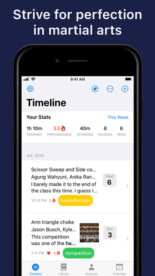 ProgressGuard is a journaling app built for martial artists who strive for perfection in their art. After each training session, athletes can log their results and reflect on what they learned on the mat. The app also serves as your library where you can grow and safeguard your arsenal of techniques. So forgetting what you studied the other day becomes a thing of the past. Every jiu-jitsu player, judoka, or boxer has a unique approach. So the app lets you add your training partners and take notes on their styles. And with features like training reminders and a calendar, you'll be more motivated than ever and never skip another class. The app will set you on a path to a more mindful martial arts journey.