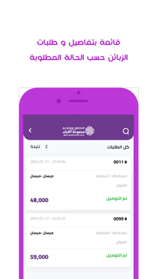 متابعة جميع طلبات الزبائن